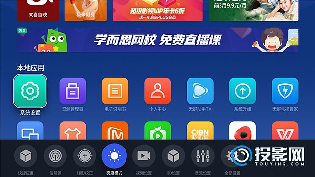 1.在极米h3的应用版块中打开系统设置,选择亮度模式;
