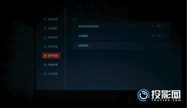 1.首先进入腾讯极光投影仪的系统设置,将安装未知来源应用打开;