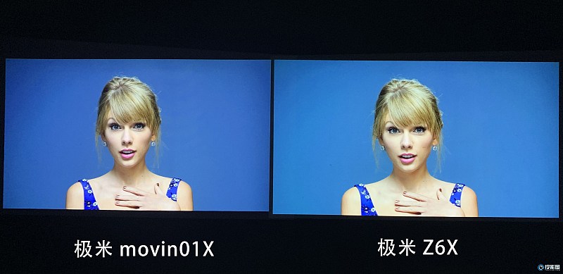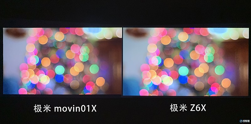 2、清晰度:两者的1080P分辨率都是通过芯片抖动技术产生,有所区别的是,movin01X为0.23DMD,Z6X为0.33DMD,相差一个档次,在远距离观看下,区别不明显,但近距离对比,能在极米movin01X的画面上看到方形像素点。