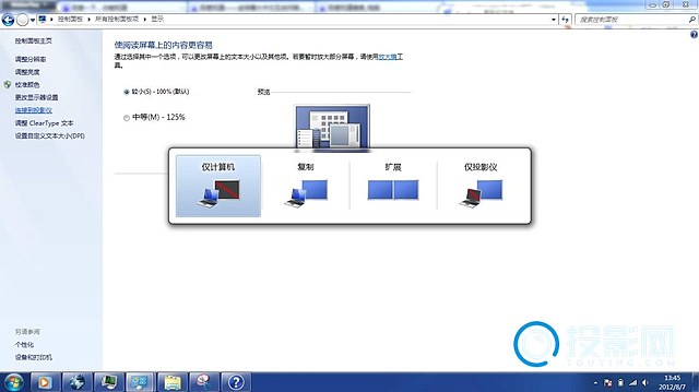 将酷乐视投影仪和电脑通过HDMI线连接起来;||在电脑端切换复制模式,然后在桌面右键打开屏幕分辨率设置界面;||选择第二屏幕,在分辨率栏调整分辨率即可。