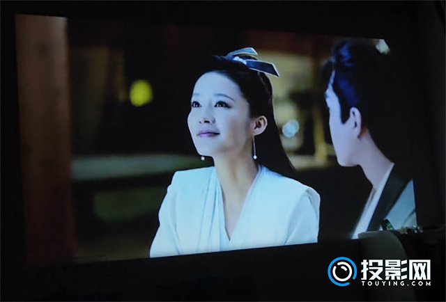 不管参数怎么标,总是要看投影仪的画面效果的,分别拍摄了两张投影画面,一张是在全黑的工作环境,一张是在开灯的场景。全黑场景的画面还算能看,但是对比度很差,颜色不能较好的分辨,开灯的环境下就更不用说了,画面基本就没有细节了。