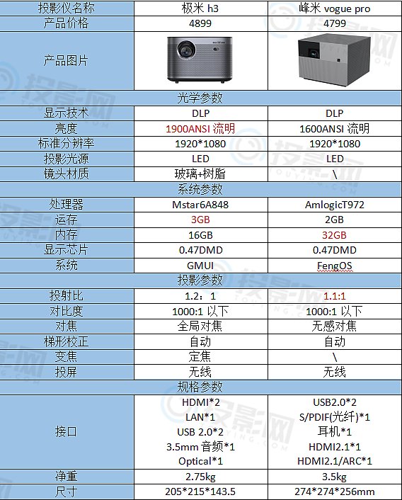 极米投影仪全部型号参数对比,到底哪款性价
