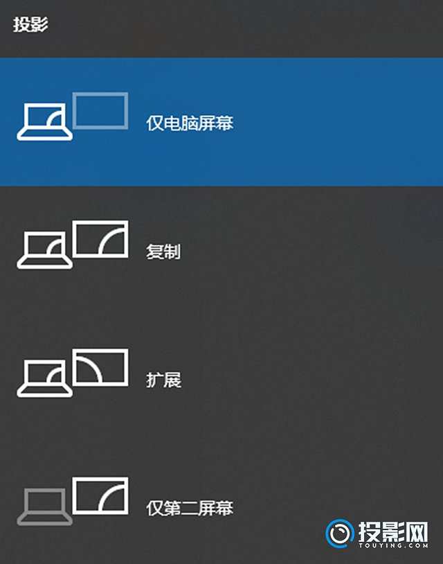 2.打开华硕电脑,按下Windows+P键打开投影设置,选择复制模式;