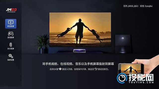 2.打开坚果投影仪上的坚果投屏,记录投影设备名称;