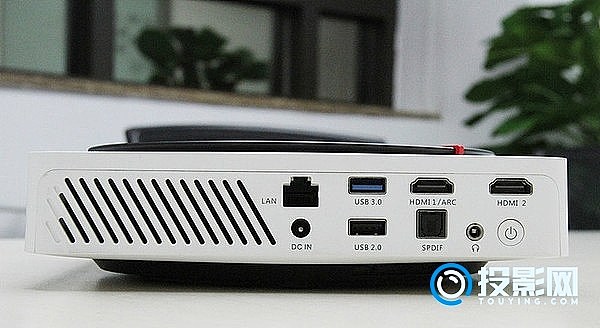 1、在投影仪的DC接口接入极米z4x投影仪电源适配器,另一头电源插口连接上电源适配器的另一头;