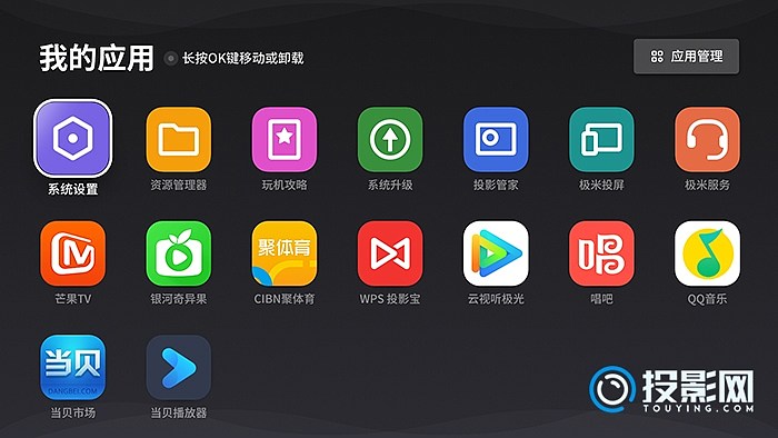 1、打开极米h3s投影仪,在我的应用找到系统设置;