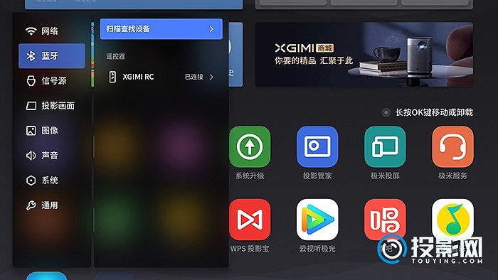 打开极米H3S的系统设置,进入到蓝牙设置中,等待蓝牙扫描附近的设备以后,选择对应的蓝牙设备进行连接即可。