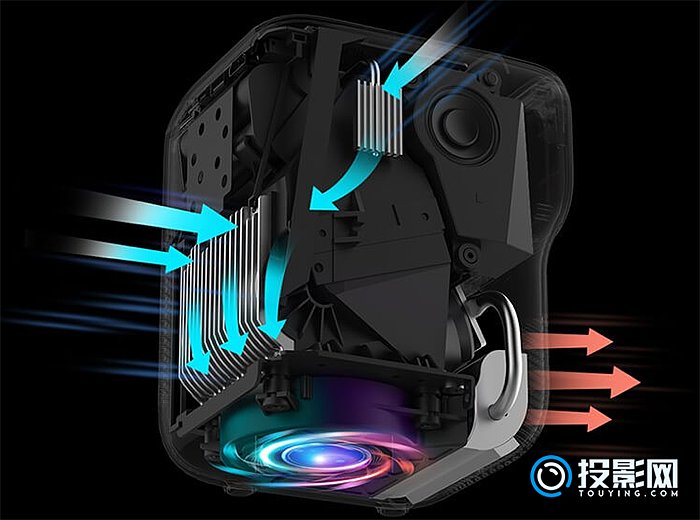 当贝c2机模较为方正,配色黑白相间,较于小明q1镜头部位前倾的设计更显美感。小明q1光机与主板部分在顶部,整个镜头向前凸起,给用户的第一眼印象略显头重脚轻,不过q1的设计还较为个性,外观标新立异。