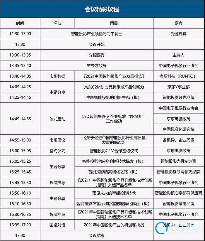 2021年中国智能投影产业高峰论坛会议议程: