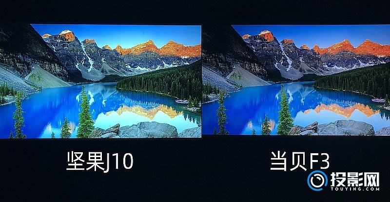 通过屏摄画面对比可以发现,坚果J10的画面有偏绿现象,而坚果J9和当贝F3的画面色彩更自然一些,其中当贝F3的色彩更加浓郁鲜艳。因此个人认为,在实际画质方面,也是当贝F3要好一些。