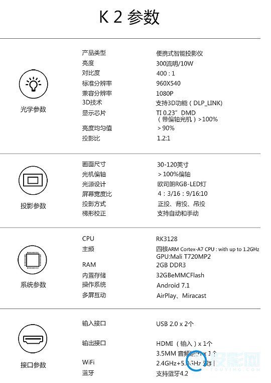 一、投美k2投影仪参数