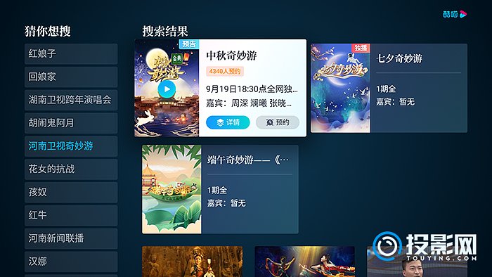 2、安装完成后,打开优酷,搜索河南奇妙游,右滑光标选择“中秋奇妙游”;