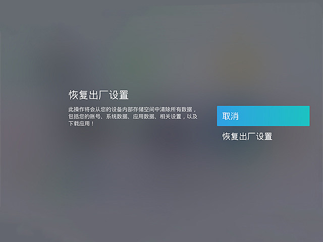 注意:恢复出厂设置后,所有设置和内容都会被重置,请确保在进行此操作之前进行备份。