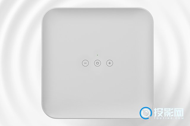 极米哈曼卡顿音响的外观为纯灰色,由羊毛织物面罩包裹着机身,边框的触感十分的亲肤,还配置了银色的哈曼卡顿银色的贴标,质感十足。整机尺寸仅有275x213x213mm,跟12.9英寸的ipadpro差不多大小,放在家里几乎没有阻碍。