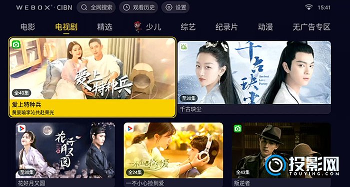 泰捷T1S投影仪的投射比为1.56:1,可以四米以内获得百吋的大画面,支持±40度的梯形校正功能,还支持有线、无线两种投屏方式,可以轻松将手机、电脑上面的内容投屏到投影仪上,不需要重复开通多种会员。