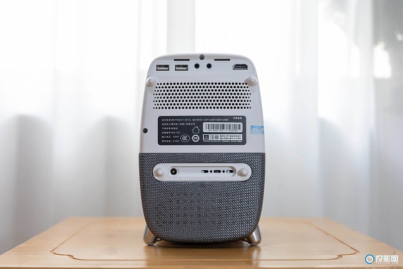 每到春节,各种贺岁片又开始纷纷登场,不过,由于我们这边YQ影响,电影院都处于关闭状态。刚好,这次我入手了泰捷T1S 投影仪,这样我在家里就能享受到大屏观影的乐趣。下面,就和大家一起分享一下我对泰捷WEBOX T1S 投影仪的使用体验。 其实,受YQ影响,现在在家里用投影仪看电影,不仅能弥补不能进电影院的状况,还可以扩展更多好玩的玩法。当然,对于个人安全也是一种保障。这次,我体验到的这款泰捷T1S 投影仪采用了全新的LCD显示技术,在画面色彩还原和对比度方面,通过实测效果,完全可以和市面上3000多的投影仪媲美。 另外,这款投影仪除支持不同的安装方式外,还可以立于桌面直接投射到天花板。这对于在房间较小的卧室,就可以躺在被窝里,利用天花板来投射观看了。这也充分体现出了泰捷T1S 投影仪在家用方面的优势。 一、开箱: 在包装方面,泰捷T1S 投影仪外部有专用的物流包装箱,内部有充气柱卷材保护,可以充分保证在运输途中的安全。投影仪的正式包装为白色,正反面一样,仅有投影仪外观图片,整体看上去比较简洁。 两个侧面分别是外观展示和厂家等信息。这里可以看到,泰捷T1S 投影仪外观和市面上常见的投影仪还是有很大区别的,算是比较个性吧。它的分辨率为真1080P,拥有自动梯形校正特色功能。这样的配置对于不足2000元的投影仪不属多见。 打开包装,内部投影仪由珍珠泡沫棉保护,配件采用了独立的纸盒包装放置于侧面,内部有电源线、电源适配器、遥控器、电池和使用说明书,这就组成了泰捷T1S 投影仪的全家福: 泰捷T1S 投影仪采用的电源适配器型号为:K120A1900500E1,额定输出为19V,5A。电源适配器的体积还算适中,线长也能满足正常使用,如果能够配条魔术贴扎线带就更完美了。 遥控器方面,泰捷T1S 投影仪配置的是一个16键遥控器,这里除了常规的控制功能外,还有调焦和语音功能。对于投影仪的语音功能,后面使用体验会有具体的说明。 二、外观细节: 对于泰捷T1S 投影仪的外观,和电影院的放映机还是有些相似的。它的正面是镜头、红外接收器和散热孔。整体外观采用立式设计,和市面上常见的投影仪相比,这种设计不会占用过多桌面面积,对于摆放位置也更灵活许多。 投影仪的侧面材质为ABS塑料+网布设计,这里的网布位置也是投影仪的音响系统。其内置了5W×2双单元气扬声器,通过AI智能调音算法,可以获得更加震撼的环绕立体声效果。关闭光机,它还是一台出色的蓝牙音箱。 在投影仪的背面,这里从上到下,分别是外部接口、散热孔、产品标签和电源接口。其外观接口共有2个USB2.0接口,可以同时接U盘和移动硬盘使用。中间的两个圆孔分别是耳机接口和AV接口,右侧为HDMI2.1高清接口。 在投影仪的顶部,除了留有散热孔外,还有9个功能按键。如果遥控器不在手边,通过投影仪的物理按键也可以正常使用,这一点设计还是很人性化的。另外,按键布局设计在顶部,也方便操作,无论是平放还是立式摆放,都不会影响操作。 在投影仪的底部,全部由布艺包裹。4角的固定脚座采用了可拆卸设计,它的机身为金属,底部与桌面接触的部位为硅胶材质。这种新颖的设计不仅能起到防滑作用,看上去还是很有高级感的。在机身正中,是一个标准吊装接口,也可以固定到三脚架上使用。 三、使用体验: 1、安装: 这款投影仪的安装非常简单,如放置在桌面上使用,只要插上电源就可以使用了。如果采用三脚架固定,可以先将云台固定到投影仪底部的接口上,然后再安装到三脚架就可以了。对于吊装则需要安装吊架了。 值得一提的是,投影仪的电源插头采用了L型设计,从侧面可以看到,它的高度位于脚座之内,这样在使用倒放时也不会影响放置的平稳。只是倒放时无法使用外部接口,比如插U盘或是采用HDMI接口了。 2、开机: 在初次使用时,插上电源系统就会自动开机。此时,只需要调整好画面对焦就可以了。泰捷T1S 投影仪不支持自动对焦,这可能是它的最大短板,毕竟它2000元内的价格在这放着。不过,通过机身上的调焦键或是遥控器长按可以快速完成对焦,再通过短按精调就可以了。 在调焦时,画面会出现变焦图片,通过图片中心的圆形和四周的黑色方块,可以方便快速完成对焦。这张图片可以辅助我们找到最佳对焦点,要比直接看画面会更直观许多。 另外,需要注意一点的是,如果家里有小孩子的话,在使用三架脚固定时,每次使用完后,记得放置到孩子触摸不到的地方。在开机时,也不要让孩子对着光机镜头直视,以免对孩子眼睛造成刺激。 3、系统: 对于投影仪的系统,我还是比较熟悉的,之前使用过泰捷的一款电视盒子,两者系统基本相似,它们最大的优点是开关机无广告,系统操作比较简洁,对于老人也比较容易上手。首次使用,只需要设置一下网络即可。 投影仪的视频资源也是非常丰富的,除了常规的电影、电视剧和综艺外,还有少儿、动漫、纪录片和专有的无广告专区。另外,还内置了奇异果、酷猫影视、芒果TV的影视资源。另外,在精选栏目里通过上下选择,还有各种热门的视频资源。这里的分类和系统内容资源一样也非常丰富,基本都是最新比较热门的资源,并且多数都是高清内容,而且自带的泰捷视频也是无广告的,这一点还是非常不错的。 另外,投影仪系统还有针对个人喜好,开发了内容桌面和应用桌面两种布局风格。系统默认为内容桌面,只要通过遥控器选