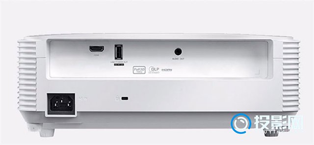 奥图码HD15的机身尺寸为316x244x106mm,重量约为3.3kg,相对有些笨重,适合固定安装在一个位置使用;在接口方面,只拥有1个USB接口,1个HDMI接口和1个音频接口,虽然接口较少,但是种类还算丰富,可以连接电脑、U盘等设备。