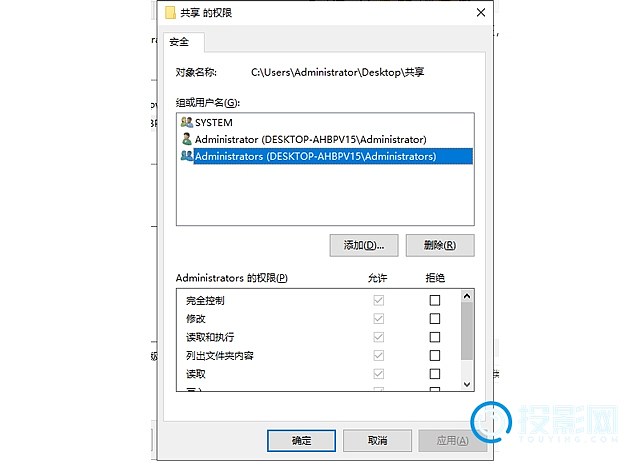 5.在组或用户名中选中刚才添加的用户,勾选全部权限,然后确认完成设置;