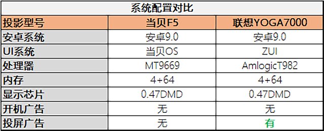 通过对联想YOGA7000和当贝F5的对比,能看出当贝F5的整体体验以及产品性能会比YOGA7000更好。首先显示方面,当贝F5的色域覆盖更广,亮度更高;系统层面当贝F5没有投屏广告,开机也更快;校正方面,F5的成功率也更高。最终我们也是解答出了最终选项。
