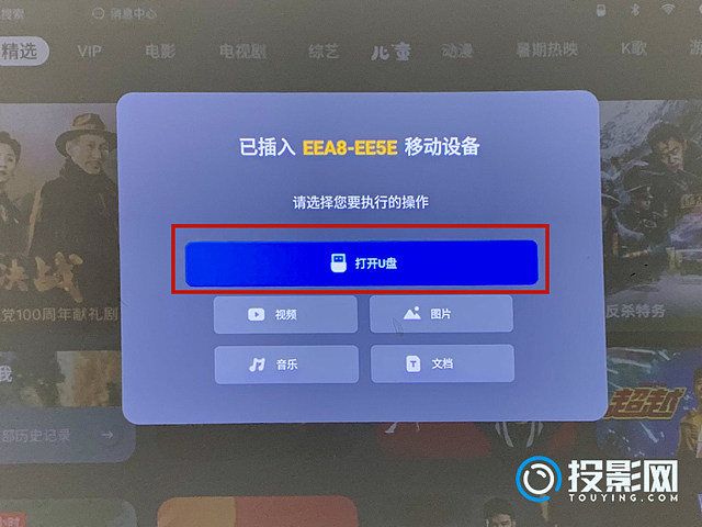 3.在投影仪上打开远程推送并将手机上的安装包推送过去安装即可。