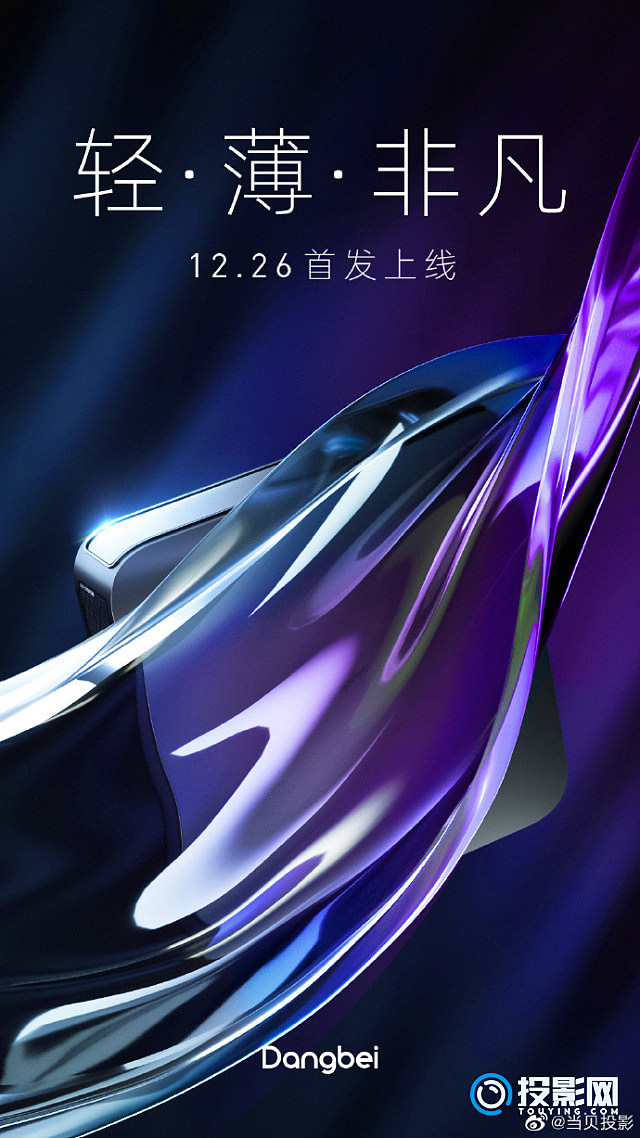 12月23日最新消息,据当贝投影官方微博,当贝新品D系列投影仪将于12月26日首发上线,定位“轻·薄·非凡”,或将在产品形态上有较大创新。