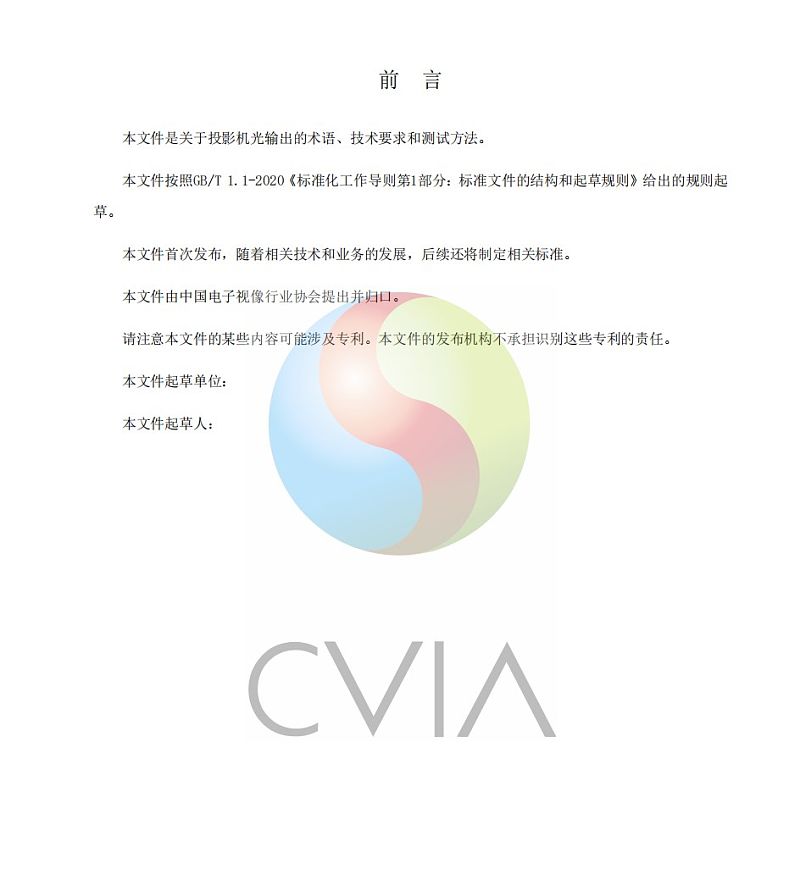 CVIA亮度标准全称《投影机光输出技术要求和测试方法》、是国内首部专门针对投影机亮度相关的团体标准。CVIA标准的核心三点要求分别是: