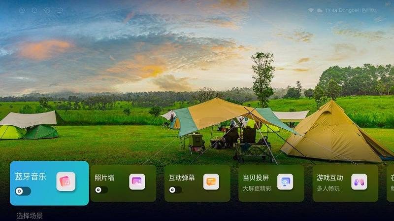 当贝D5X Pro的露营模式是其他投影仪中没有的模式,这个模式下整合了蓝牙、照片墙、小游戏、弹幕互动等多项功能,更适合外出游玩时使用,还是很有趣的。