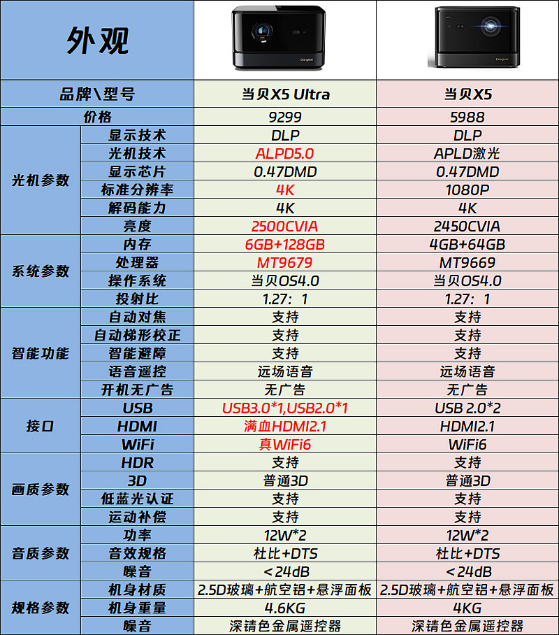 当贝X5Ultra和X5有什么区别,当贝X5Ultra对比X5有哪些提升