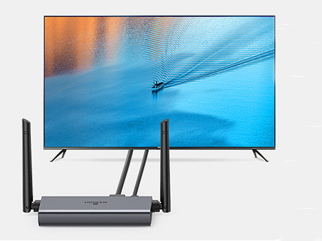 按下发射器上的按键连接接收器即可让联想小新投屏电视。