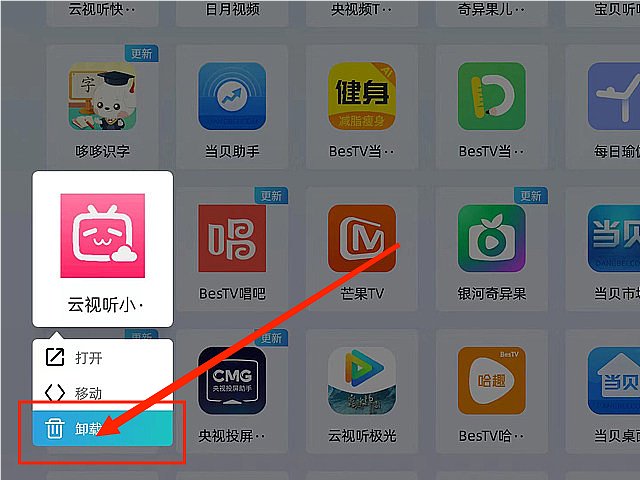 在小明投影仪的应用界面选择需要卸载的应用软件;