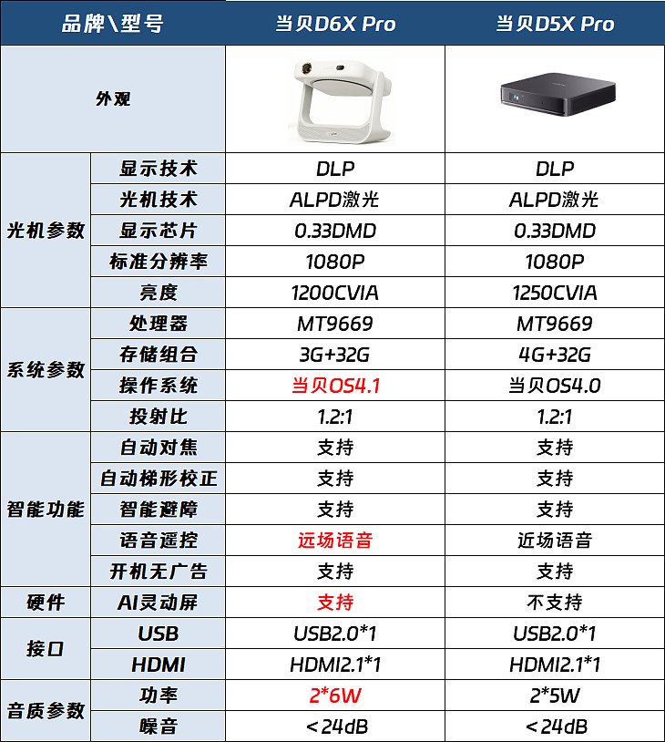 当贝D6X Pro和当贝D5X Pro区别有哪些,对比分析提升多少