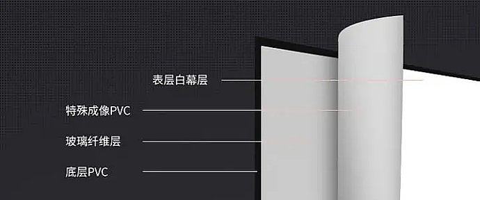 比较主流的一种幕布,底层除了PVC外,还采用了玻璃纤维编织,最后涂抹特殊的PVC材料。对比白塑幕布,玻纤更加平整,且不容易卷边,最终效果明显高于白墙,增益和对比度均有提升效果。对比白软幕布,玻纤幕布的上限要低,最高端的玻纤是比不上软白的,所以,避光比较好的影音室选择软白的更多。