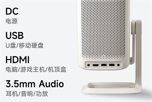 在外观方面,哈趣NEWK2和哈趣K2都配备有云台支架,让设备投射角度更容易调节,方便选择投射角度;在接口方面,两款投影仪都拥有实用的接口,配备有HDMI2.1、USB接口,让设备的扩展性更强。