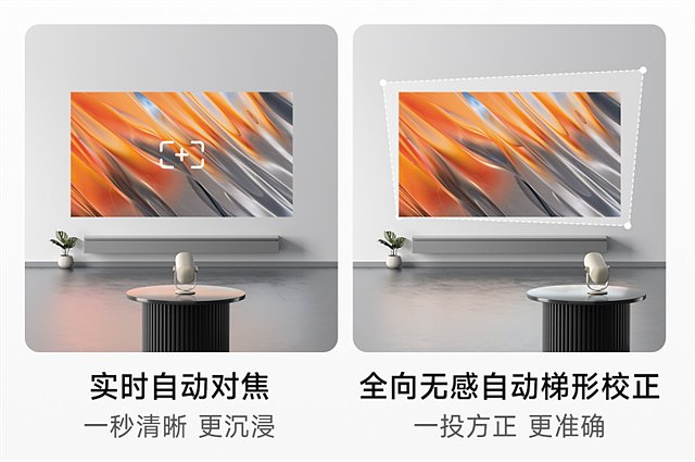 在画面校正功能方面,当贝Smart1和Redmi3Pro都支持自动对焦和自动梯形校正,确保画面始终保持方正清晰的画面,同时支持自动入幕和自动避障,保证画面处于最佳状态。