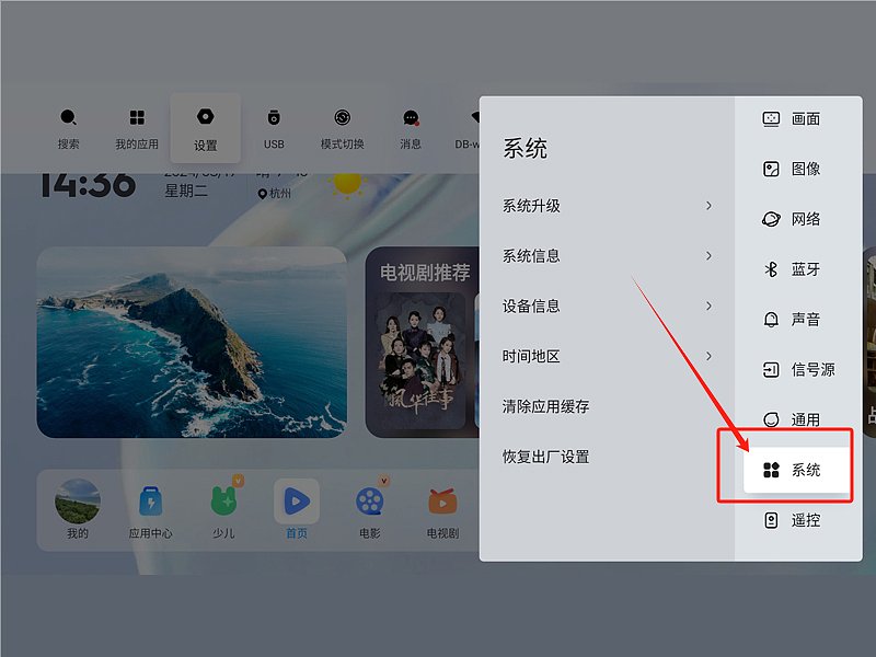 3. 自动弹出当贝私人管家功能,点设置,开机logo及声音,把开机音乐打开。
