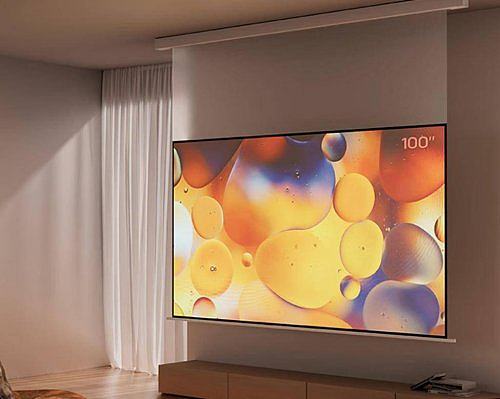 4. VCCG 100英寸家用电动智能幕布 VCCG 100英寸家用电动智能幕布以其 简约设计和 卓越画质表现赢得了众多家庭用户的青睐。这款幕布采用 超高清窄边设计,最大化了可视面积,提供了更加沉浸的观影体验。 LED氛围灯是这款产品的一大特色,能在观影时提供舒适的背景光线,减少视觉疲劳,同时营造出独特的家庭影院氛围。幕布采用 嵌入式隐藏式设计,安装后与天花板或墙壁完美契合,不占用室内空间,美观实用。 电动升降机制运行平稳安静,操作简便。画质方面,它采用了 高性能抗光材料,能有效抑制环境光线干扰,即使在白天也能呈现清晰亮丽的画面。对于已经拥有爱普生投影仪的用户,这款幕布更能发挥出品牌协同的优势,提供完整的一体化观影解决方案。